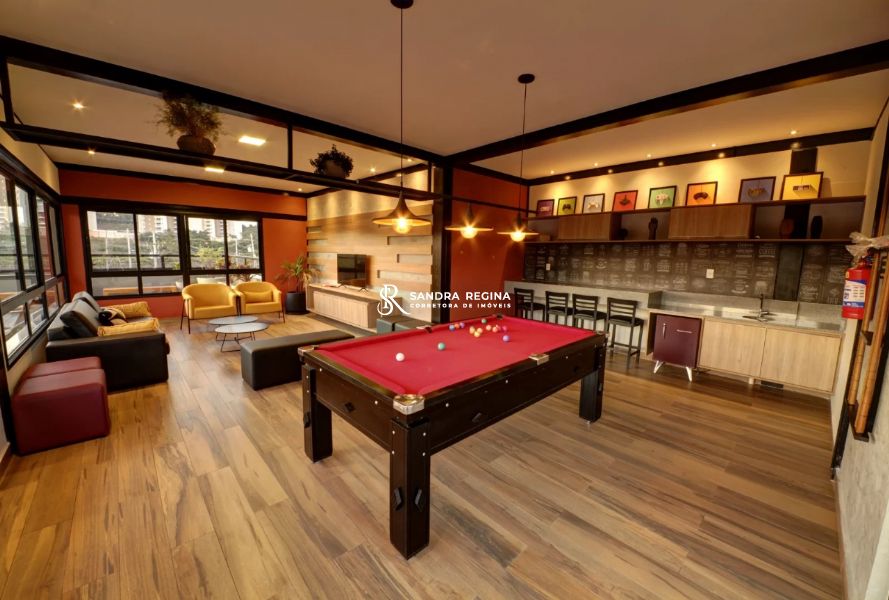 Conta ainda com varanda gourmet, além de duas vagas de garagem cobertas