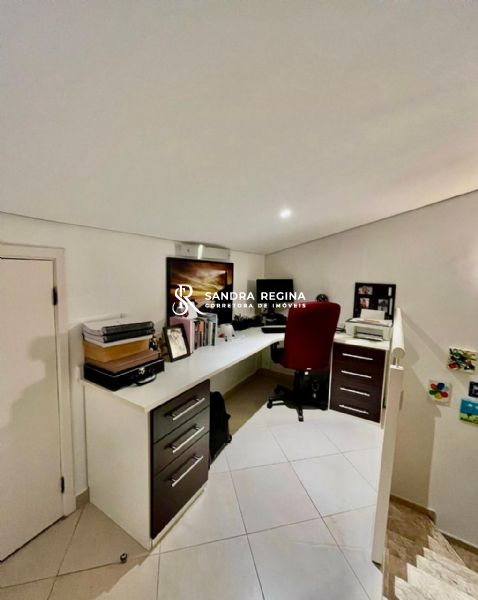 O imóvel conta com um sótão aconchegante, configurado com sala de tv e escritório, um verdadeiro refúgio para momentos de descanso ou trabalho